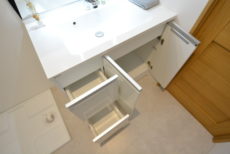 洗剤は洗面化粧台下の収納場所に入れておくと使い勝手がいいかもしれませんね。