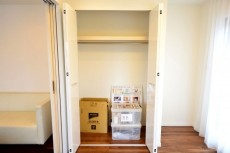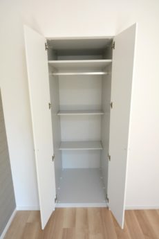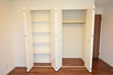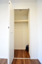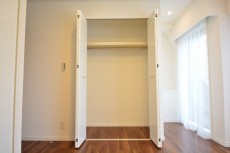 収納はクローゼット。幅はそれ程広くはありませんが奥行きがあり、奥には棚も設置されていて収納力は十分です。