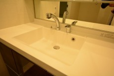 こちらが洗面化粧台です。鏡も洗面器も大きいです。