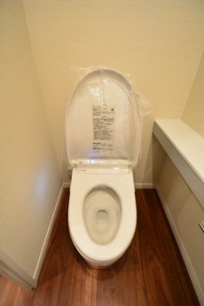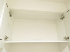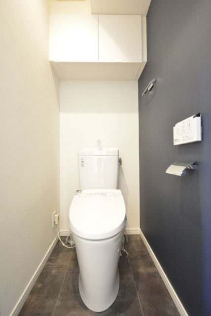 トイレは洗面室のお隣。ウォシュレットと吊戸棚がついています。