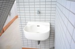 トイレットペーパーなどの収納に便利な吊戸棚も付いています。少し低めの位置が嬉しいですね。もちろん洗浄便座付き。INAX製のシャワートイレです。