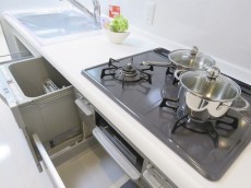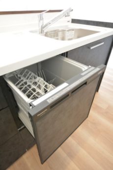 3口コンロ、浄水機能付き水栓、食洗機付きとキッチンはスペック◎!食洗機があれば後片付けの時間も短縮。食後ゆっくり過ごせる時間が増えるかも・・・!