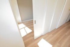 この洋室の仕切り戸は引込式の吊り下げ扉。開放時には、扉が収納出来てスッキリ、床にレールがないので一体感もアップします。