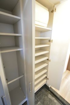 玄関を入ると左側には天井まであるシューズボックスがつくられています。