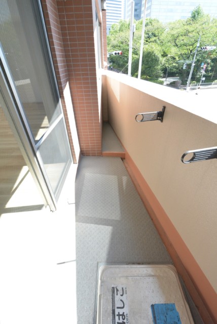 バルコニーの外はエントランス前の通り。周囲の建物と距離があるので、開放的です。