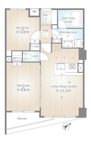 今回ご紹介するお部屋は2階、専有面積50.66㎡の2LDK。お一人暮らしやDINKSの方のお勧めのお部屋です。全室採光あり!