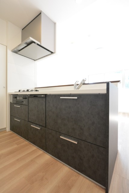 調理台下には食器洗浄乾燥機とスライドキャビネット。憧れの食洗機!洗い物をお任せすれば食後の時間をのんびり過ごせますね(^^)スライドタイプの収納は出し入れがしやすいのが特徴です。大きな鍋でも楽にしまう事が出来ますよ。