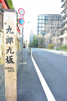 青山通りから豊川稲荷横の九朗九坂(くろぐざか)を進んで行きます。この坂の名の由来ですが、江戸時代の一ツ木町名主秋元八郎左衛門の先祖、九郎九が住んでいたから名付けられたそうです。鉄砲練習場があって鉄砲坂ともいうらしいですよ!