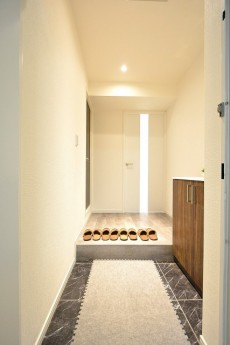 玄関の上がり框は高さがあり、腰かけて靴を履くのにはちょうど良い高さ感です。