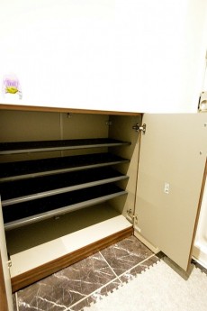 カウンタータイプのシューズBOXは可動棚で高さ調節可能。