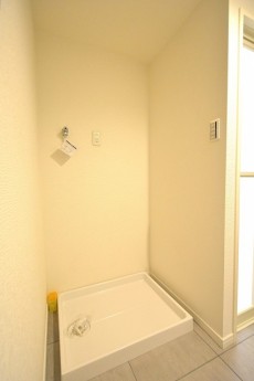 左側にランドリースペースとバスルーム、正面にトイレの配置です。