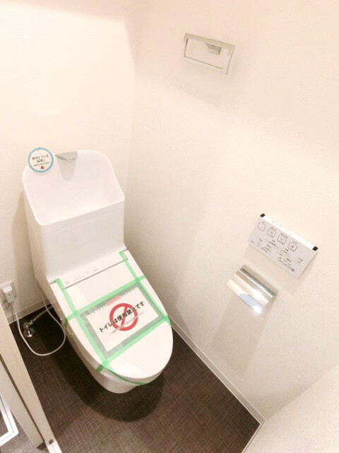吊戸棚も設置されていてトイレットペーパーなどに重宝します。