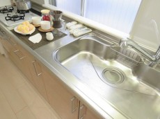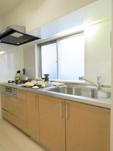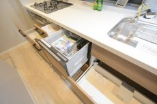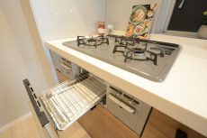 キッチン設備は3口ガスコンロにグリル、浄水器一体水栓に食洗器も付いて充実しています。