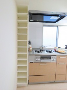 壁付けタイプのキッチンは収納豊富で、デッドスペースが少なくお部屋を広く使うことができます。