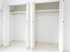 玄関に近い方の洋室は壁一面にクローゼットがつくられた収納豊富なお部屋です。窓は二重サッシになっています。