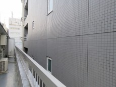 バルコニーの正面はお隣の建物の壁面。一番端からは少しだけ開けた眺めがご覧いただけます。