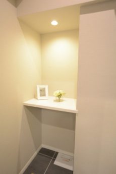 クローゼットももちろんありますが、腰高のカウンターがありオブジェのディスプレイやTV台としても使えそうです。