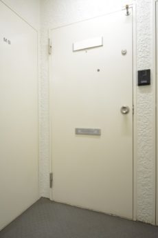 エントランス。(オートロックはありませんが、ご紹介するお部屋のインターホンはTVモニターがついており、来訪者の顔が確認できるようになっています。)