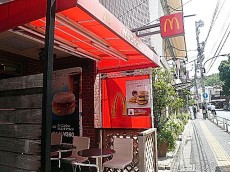 信号を渡りますとおしゃれなカフェもありつつお手ごろなコンビニやファーストフードもあります。