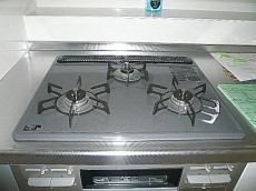 コンロは3口~ハンバーグを焼きながら隣でスープもコトコト。。。手際よく調理ができそうです。