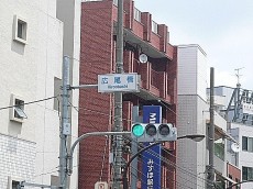 駅周辺には、銀行、パン屋さん、コンビニ、カフェ、ショップなどが建ち並び賑やかなでありながら品のある街並みです。改札をでて外苑西通りを右へ少し進むと広尾橋信号があります。こちらを渡りマンションへ進みたいと思います。