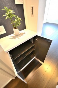 玄関左にはシューズボックスがあります。トールサイズで、可動式の棚なので、色々なサイズの靴をスッキリと収納しておくことができそうです☆