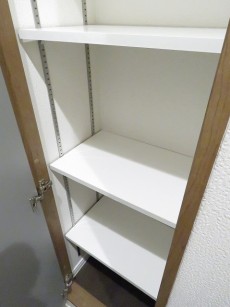 こちらの収納もリビングダイニングにあります。棚は可動式、細みですが奥行きある収納場所です。