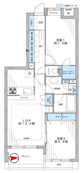 ウォークインクローゼット、クローゼット、廊下収納など収納豊富。