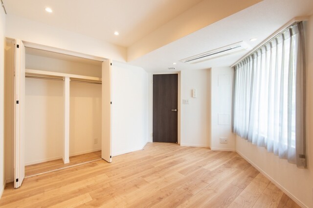 こちらは約5帖の洋室。廊下から入る独立性の高いお部屋です。全部の居室にビルドインタイプのエアコンが付いているんですね。