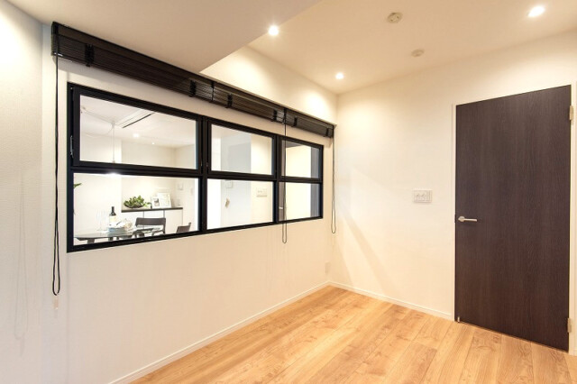 リビング・ダイニングとの間は室内窓。リビングとの一体感を感じることも出来ますし、ブラインドを閉めればプライバシーも保てます。