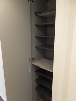 扉付き収納にはトイレットペーパーなどのストックが置けます。