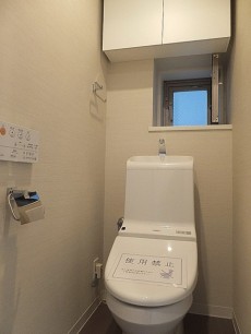 【トイレ:洗浄機能一体型・吊り戸棚付き】