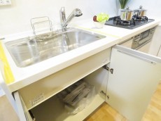 シンク下の収納スペースには大きなお鍋やフライパンもすっぽり収まるハズ。