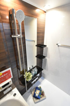 浴室は木目調のパネルが温かい雰囲気を醸し出しています。