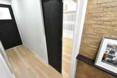 黒い扉が玄関の印象を引き締めていて、なんだかそれだけで空間がオシャレ化しますね!シューズクローゼットの床もコールテン鋼のようなニュアンスのあるものが採用されています。