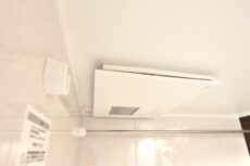 浴室内には浴室暖房歓喜乾燥機が設置されています。こちらのお部屋にはバルコニーがないので、日々の洗濯物は浴室で干すことになりそうです。
