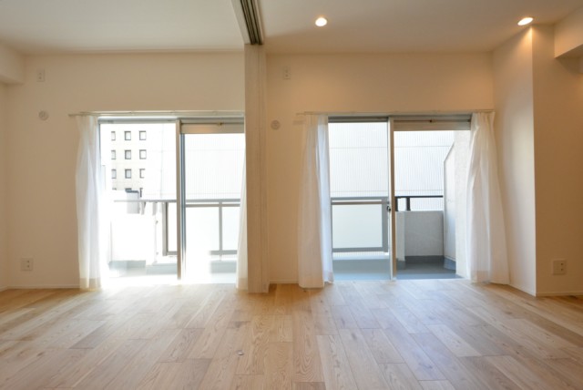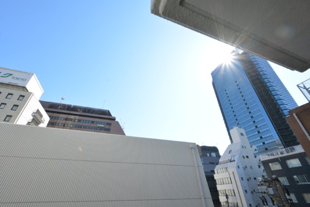 バルコニー正面にメルパルクホールがあり景色は望めませんが、目線が気になるような窓は少ないです。