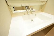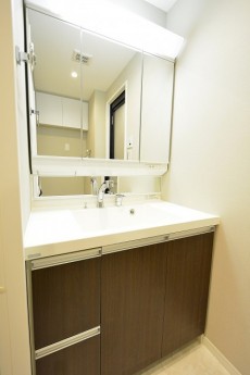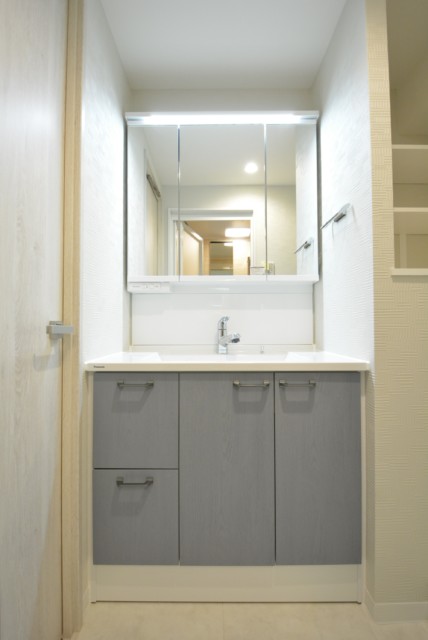 まずは洗面台。三面鏡付きで寝ぐせの発見もスムーズにいきそうです(笑)