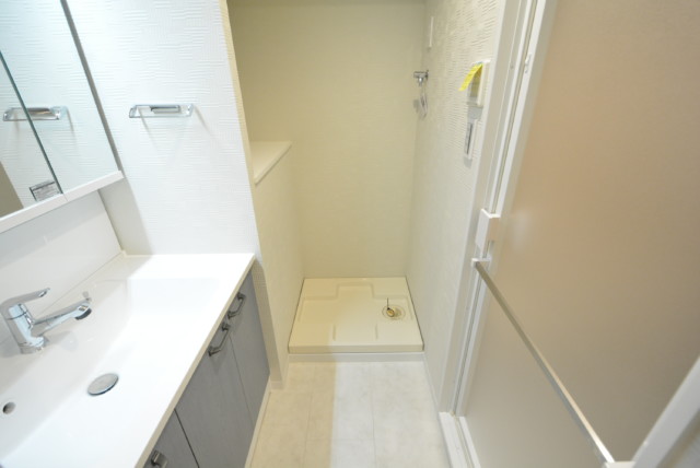 洗面台、洗濯機スペース、浴室がまとまっています。