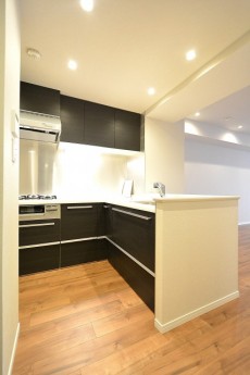L字キッチンは動線がよく、作業スペースの広いのがうれしですね!