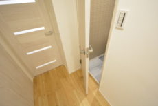 バリアフリーで段差が低くなる傾向にありますが、この位の高さがあると座って靴を履いたり出来て助かります。足元を照らすライトも付いていますよ。人感センサーは中に入っただけで自動的にライトを点けてくれる優れもの。真っ暗な中、手探りでスイッチを探すなんて事ももうありません。