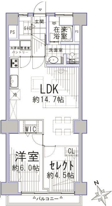 南西向き2面採光で使いやすい振り分けタイプ、約67.50㎡の広々とした2LDKです。