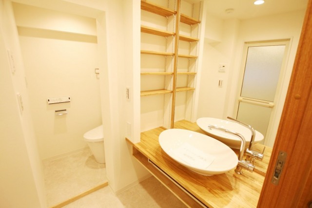 吊戸棚やカウンター、窓もあり換気もできて明るく使いやすいトイレです。