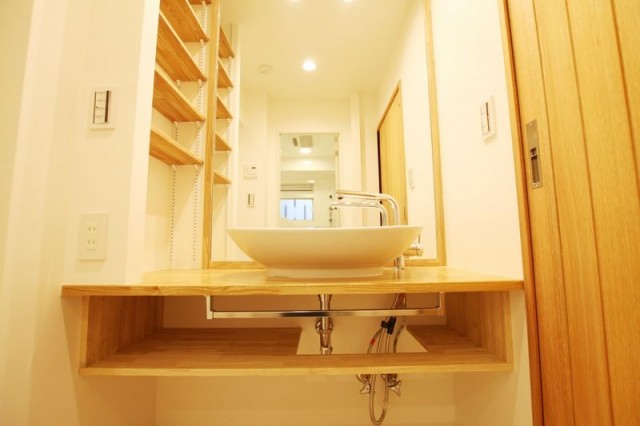 稼働だなの収納スペースもあり、備品のストックやバスタオルなども置いて置くことができます!