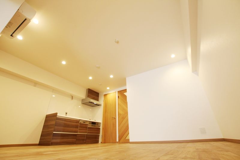 約16.3帖のLDKは窓があり明るく、照明もスポットライトや間接照明など凝ってます。