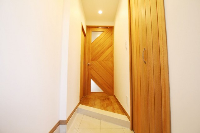 玄関から廊下は左に曲がりお部屋の中が見えない造りでプライバシーも守られます。