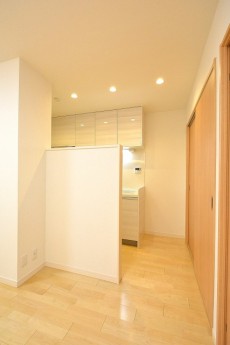 リビングダイニングから見えずらい奥まった位置にレイアウトされたキッチン。
