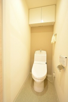 トイレットペーパーや芳香剤などのストックはは吊戸棚をお使いください。