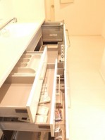 3口コンロのシステムキッチンは食洗器、浄水器、電子コンベック付きで