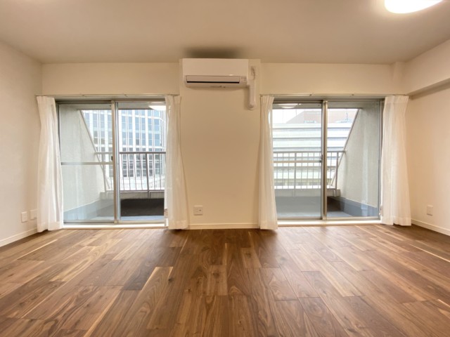こちらがリビングダイニング部分。エアコンが新規で1台ついています。